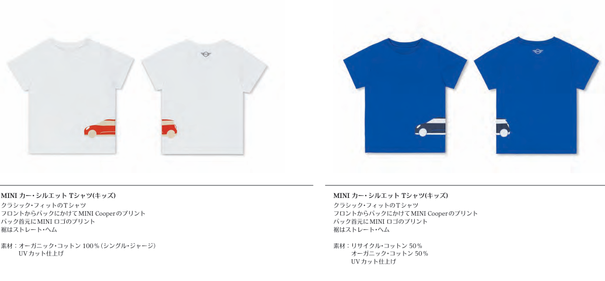 MINI お子様用Tシャツ 皆さんこんばんは。 サービス部の赤羽です。 今日はMINIカーシルエットTシャツのご紹介です。 ¥5,038(税込) コットン素材のお肌にやさしいTシャツです。 こちらの商品はお取り寄せとなります。 サイズは98~140cmまで計8種類ありますが、在庫状況についてはお問い合わせくださいませ。 詳細はこちら